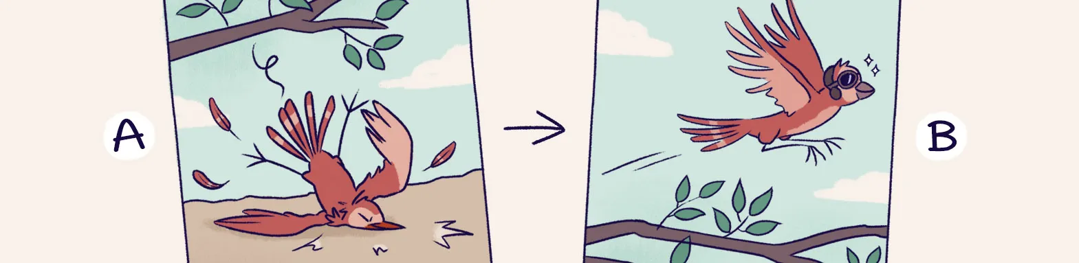 Ainsi que nous l’avons évoqué, nous percevons l’apprentissage comme un changement d’état, d’un point A vers un point B. Pour être plus précis, l’apprentissage peut s’apparenter à un changement d’état permettant à l’apprenant d’analyser et de résoudre un problème ou une situation de lui-même, de manière concluante.