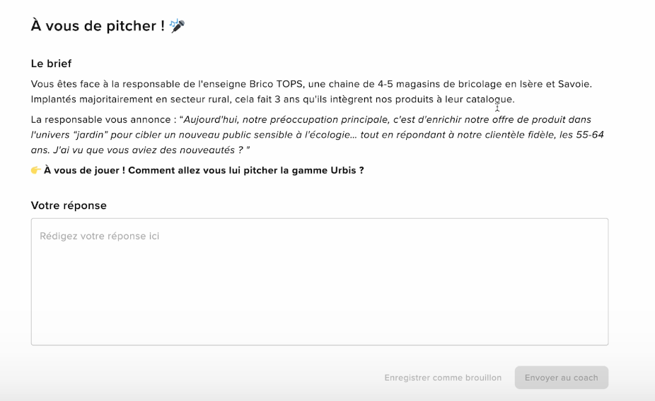 Ensuite, le coach IA entre en scène en mode conversationnel, analysant la production de l’apprenant selon les critères préalablement définis par le concepteur.