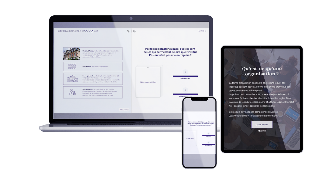 Nous étions donc à la recherche d’un partenaire e-learning capable de nous accompagner sur la transformation numérique et la vente de tous les sujets de formation initiale ou continue de notre catalogue, avec une exigence : la qualité pédagogique afin de répondre à nos critères.
